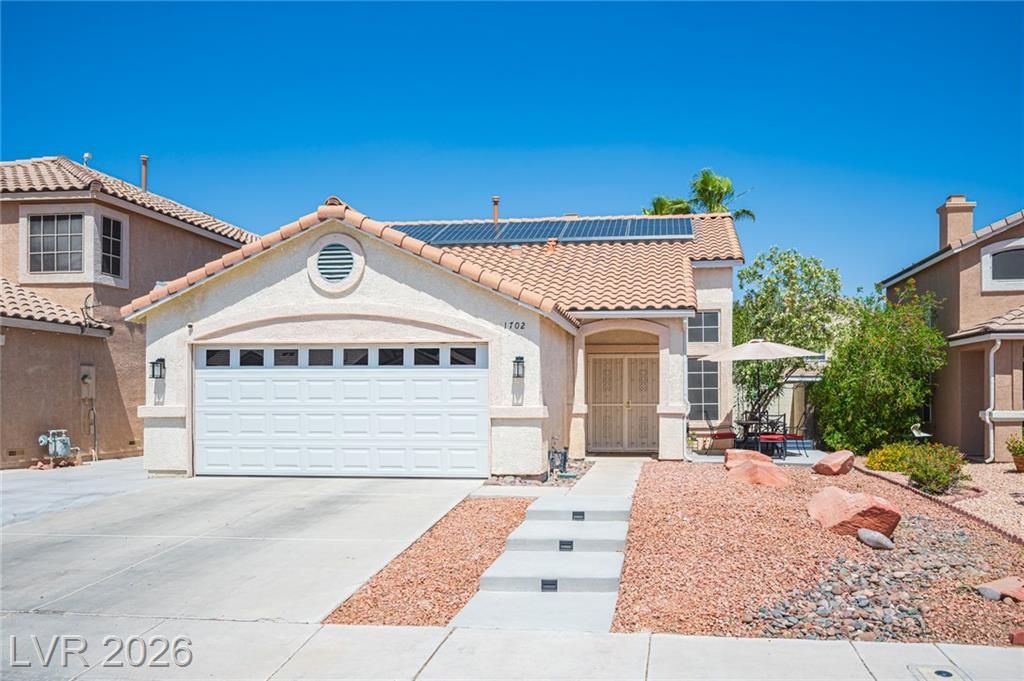 Special Loan Alert!!!(Primary Resident Buyers Only)This home qualifies for a unique 30-year fixed conventional loan program featuring below-market interest rate, 3% down payment, and no mortgage insurance for qualified applicants. Welcome to this beautifully maintained home in the highly desirable Eldorado community of North Las Vegas. Designed with comfort and functionality in mind, this home features an open-concept layout, spacious living areas, and abundant natural light throughout. The well-appointed kitchen flows seamlessly into the main living space?perfect for both entertaining and everyday living.Step outside to your newly remodeled private backyard, complete with custom pavers and low-maintenance synthetic grass, ideal for gatherings, pets, or relaxing evenings.Enjoy Tesla solar, keeping power bills under $100 per month year-round.Conveniently located near parks, shopping, dining, and major roadways, this home offers the perfect blend of comfort, efficiency, and value.