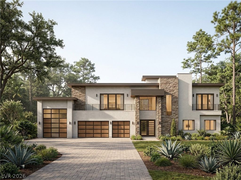 Modern luxury meets opportunity in this stunning 5,933 sq ft two-story home in Henderson, currently at the framing stage and set on a generous .93-acre lot. Designed for both comfort and style, this residence features 4 spacious bedrooms and 5 bathrooms, each bedroom with its own ensuite. A 3-car garage is complemented by an attached RV garage for added convenience. Upstairs, the primary suite and two additional bedrooms open to private balconies with sweeping views of the city, Las Vegas Strip, and surrounding mountains. Interior highlights include porcelain countertops, Italian stone flooring, luxury vinyl plank wood, and plush carpeted bedrooms, along with a striking floating staircase. The property will be fully enclosed with a block wall for privacy. Act early to personalize finishes and paint colors to your taste.